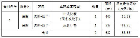 2.2招商范围及合同包:本次招商业态为昌图服务区中式快餐和美食广场2个点位,划分为一个合同包。