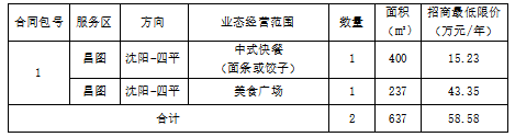 2.2招商范围及合同包:本次招商业态为昌图服务区中式快餐和美食广场2个点位,划分为一个合同包。